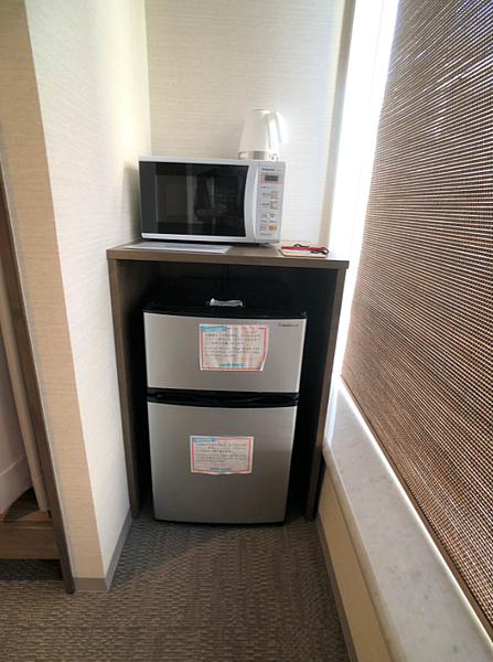 這是我第一次碰到房間內就有提供熱水壺、微波爐和冰箱的